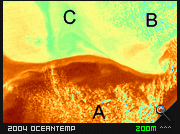 “FALSE DATA” will blend in and obliterate legitimate surface readings and replace them with erroneous readings. Only an experienced person and NOT a computer program can identify false data.“FALSE DATA” is rampant on products that are mass produced and not inspected such as free sites and low quality fee based cheep SST sites that really should be free.OCEANTEMP PRE-INSPECTS EACH SATELLITE PHOTO FOR "FALSE DATA" THIS IS ONE OF THREE (3)SEPERATE INSPECTIONS USED TO SELECT ONLY THE BEST PHOTOS FOR CHART PRODUCTION.